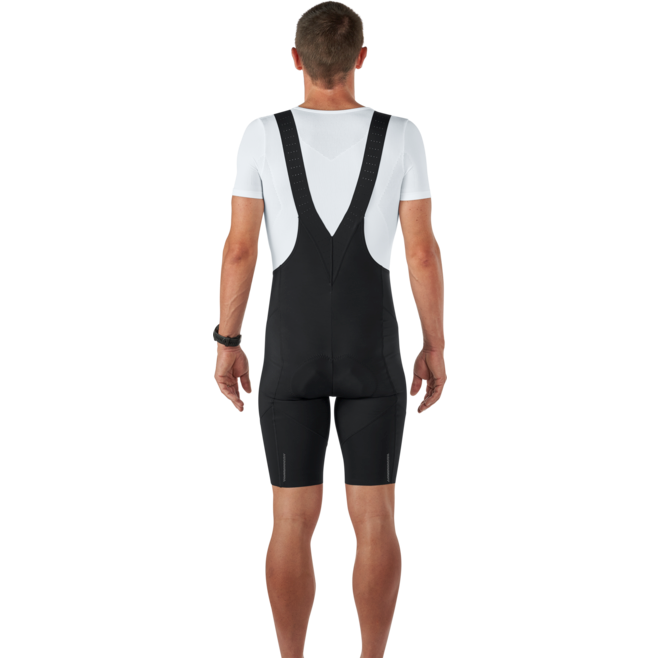 Le ampie fasce di questo pantaloncino con bretelle sono realizzate in materiale elastico perforato, per evitare la formazione di grinze e restare aderenti al corpo La preformatura riduce l’ingombro quando la pedalata si fa più aggressiva Perfettamente abbinabile a gambali idrorepellenti come i gambali Cosmic H2O. Elementi rifrangenti sul davanti e sul retro.