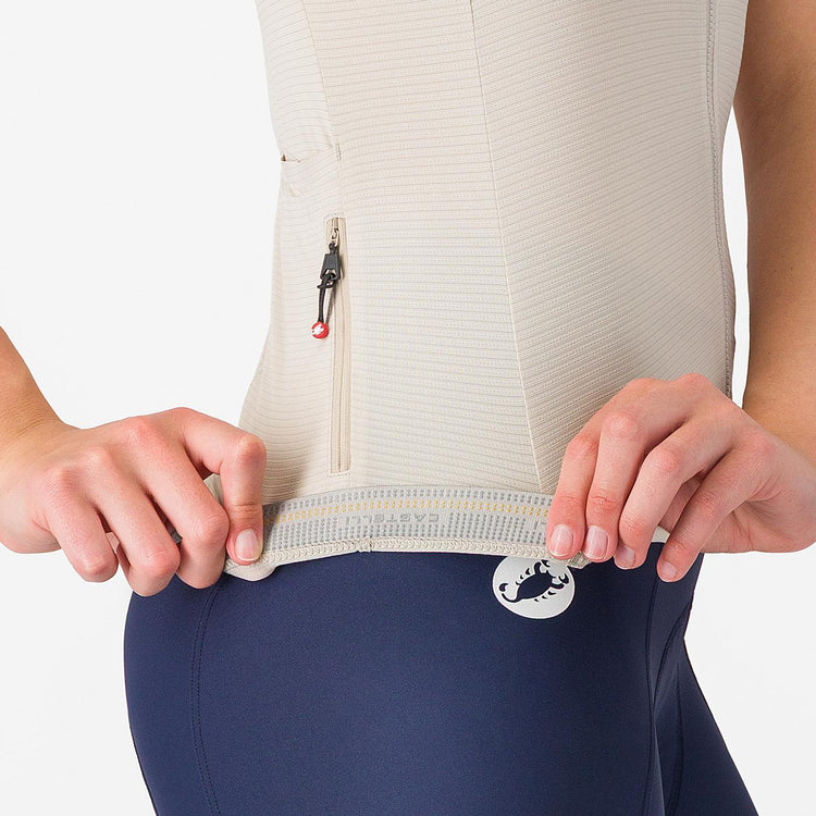 Quando abbiamo deciso di realizzare la W Espresso Jersey originale, volevamo creare una maglia che avresti sempre voluto indossare, anche se normalmente indossi una maglia aerodinamica da gara o dal taglio più regolare. Abbiamo sviluppato un tessuto che consentisse una vestibilità aderente senza risultare troppo stretto. Il tessuto offre inoltre un’ottima traspirabilità e regolazione dell’umidità e, sorprendentemente, si comporta bene anche nella galleria del vento! Con l’innovazione nel nostro DNA e una sana ossessione per i dettagli, abbiamo deciso di migliorare la nostra maglia preferita. La nuova versione della Espresso 2 W Jersey è caratterizzata da una vestibilità più corta sul davanti, ottenuta abbassando il collo di 1,5 cm e riducendo la quantità di elastico in vita. Abbiamo dedicato molta attenzione a migliorare la struttura delle tasche, rendendole meno elasticizzate e più compatte, aggiungendo poi anche una bella finitura al bordo. Naturalmente non può mancare la quarta tasca con cerniera, fondamentale per riporre gli oggetti di valore. Sulla cerniera puoi trovare il nuovo logotipo aggiornato e lo scorpione Castelli in colore tono su tono, oltre al nostro iconico scorpione rosso.