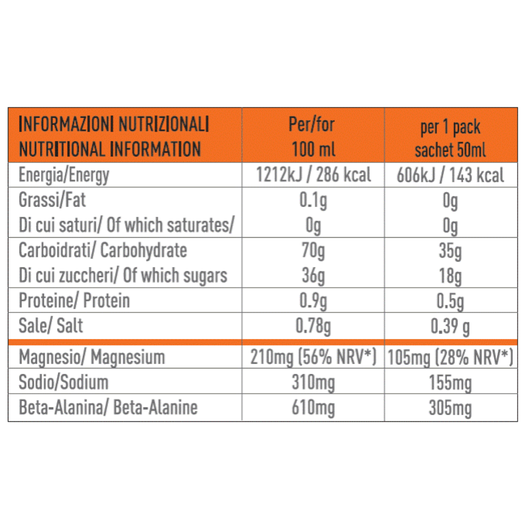 35g di carboidrati – 143 kcal per pack (50 ml)