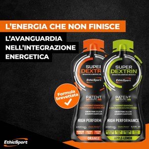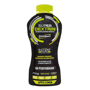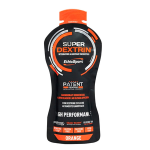 Super Dextrin in gel è un integratore alimentare energetico di nuova generazione. E' una miscela brevettata a base di carboidrati speciali, a lento rilascio, lunga durata e ad elevata efficienza. Contiene HBCD (destrine cicliche altamente ramificate), Palatinose, Destrine DE6 e DE18, per una cessione graduale e progressiva delle energie durante lo sport.