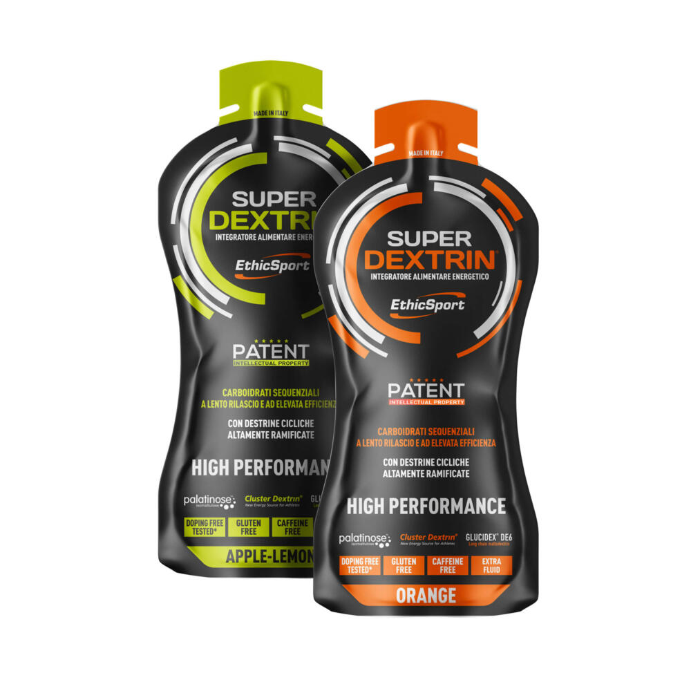 SUPER DEXTRIN® è un integratore alimentare energetico di nuova generazione che sfrutta la sinergia tra Cluster Dextrin® (HBCD = maltodestrine cicliche altamente ramificate), Palatinose®, Glucidex® DE6 e DE18 (maltodestrine a diversa destrosio equivalenza). Questa speciale associazione genera una cessione dell’energia differenziata e un elevato tempo di esaurimento delle scorte energetiche. La formulazione di SUPER DEXTRIN® è brevettata, grazie alle sue caratteristiche particolarmente innovative. SUPER DEXTRIN® è senza caffeina, non contiene glutine ed è doping free tested*. Il prodotto è testato privo di Nandrolone e Testosterone con loro precursori, privo di amfetamine ed efedrine.