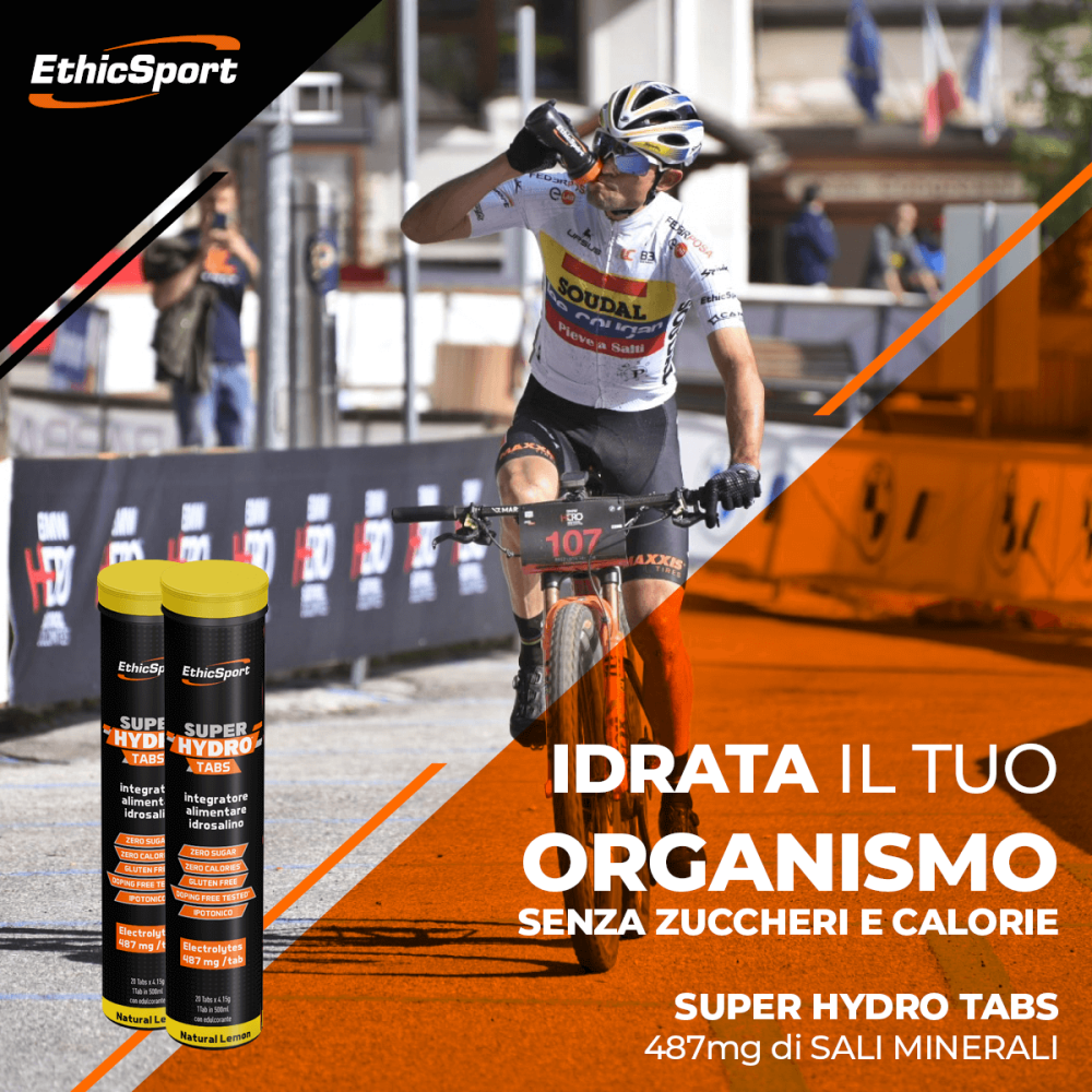 SuperHydro Tabs è un integratore alimentare idrosalino in compresse, senza zuccheri aggiunti e senza calorie1. La speciale formulazione consente un’ottimale idratazione e ottimizza l’assorbimento di acqua durante l’attività intensa. Sodio, potassio, magnesio, calcio e cloro sono elettroliti bilanciati che generano una soluzione con 487mg di sali minerali per compressa.