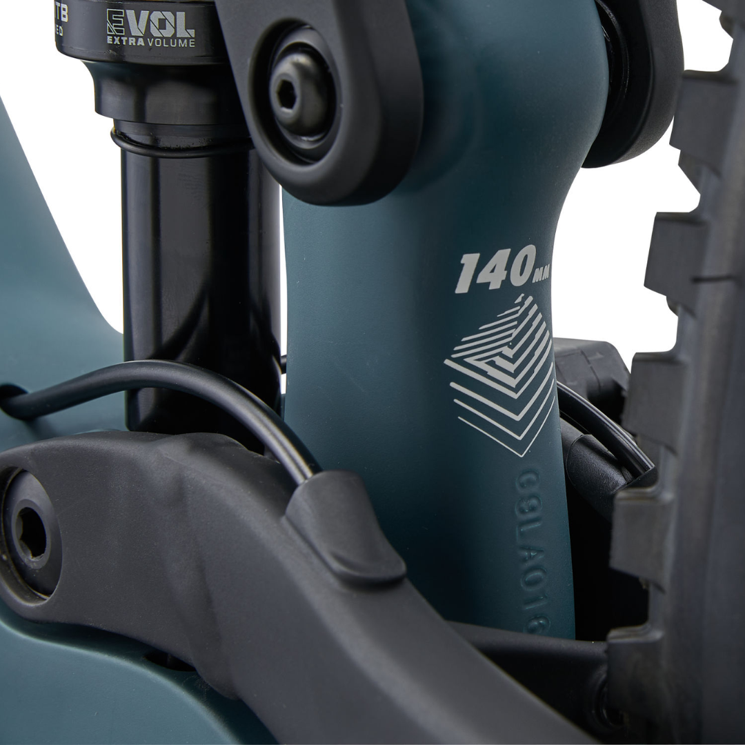 La nuova sospensione FlexPoint offre 140 mm di escursione posteriore attiva, abbinata a una forcella da 150 mm, garantendo una guida più fluida e performante rispetto al setup precedente da 125/140 mm. La geometria aggiornata porta ulteriori vantaggi: Un angolo tubo sella più verticale di 76,5° ti colloca in una posizione di pedalata più potente ed efficiente in salita. Un angolo tubo sterzo più rilassato di 64,5° e un incremento dello sbasso movimento centrale abbassano il baricentro, migliorando stabilità e controllo. Il risultato? Massima sicurezza e fiducia anche quando il sentiero diventa veloce, ripido e tecnico.