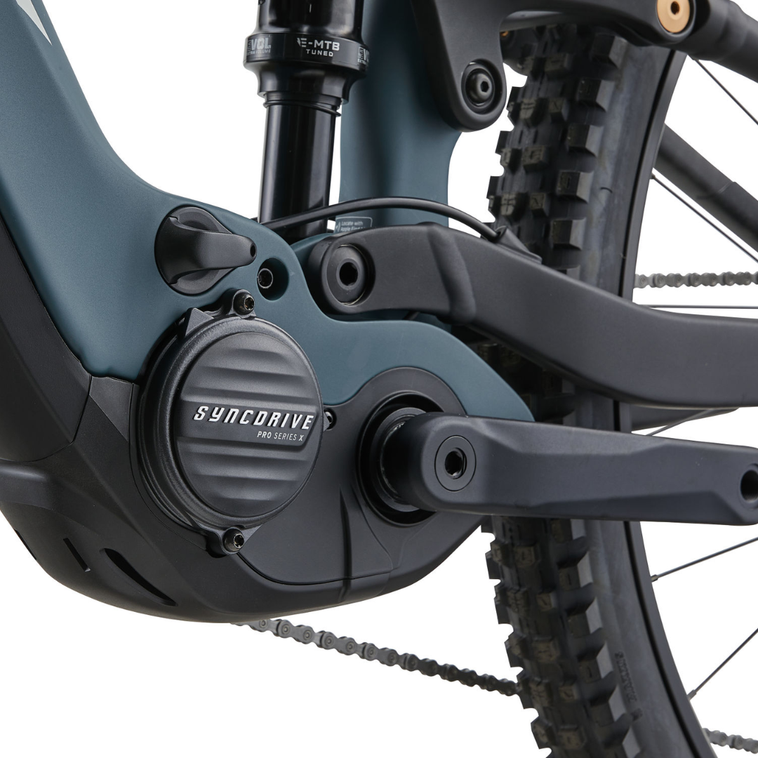 Il nuovo motore SyncDrive Pro 3X trasforma la Stance E+ con un notevole incremento di prestazioni. Basato sul design leggero da 2,6 kg del motore Pro 3, eroga fino a 800 W di potenza massima con 100 Nm di coppia. Il risultato è un miglioramento dell’11% del rapporto coppia/peso, garantendo prestazioni superiori in salita e maggiore controllo sui terreni tecnici. È progettato per mantenere livelli di assistenza potenti su un’ampia gamma di cadenze, offrendo supporto costante anche nelle uscite più lunghe. Oltre al motore, la sospensione posteriore è ottimizzata con anti-squat potenziato, riducendo le perdite di energia e migliorando l’efficienza della pedalata.
