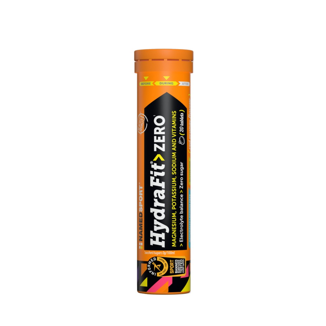 Sali minerali Named Hydrafit Zero. Compresse effervescenti a base di elettroliti e vitamine, senza zuccheri aggiunti e senza calorie. La speciale formulazione di HydraFit> ZERO è studiata per favorire l’equilibrio elettrolitico durante l’allenamento intenso o in caso di alte temperature. Le vitamine B1, B2, B6 contribuiscono alla riduzione della stanchezza e dell’affaticamento e al normale metabolismo energetico. Magnesio e potassio contribuiscono alla normale funzione muscolare.