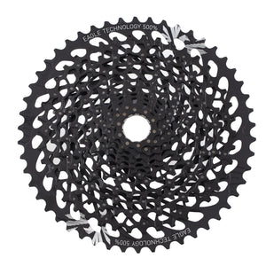 La tecnologia Full Pin permette di unire tra loro i 12 pignoni in acciaio della cassetta mediante l'utilizzo di 136 pin in acciaio inossidabile ad alta resistenza. Questo permette di ottenere un pacco pignoni estremamente leggero e resistente, equipaggiato con l'incredibile range di rapporti che solo Sram è capace di offrire. Il design aperto simile alle cassette X-Dome permette di ridurre l'accumulo di fango garantendo allo stesso tempo una cambiata sempre costante e una lunga vita dei singoli componenti.