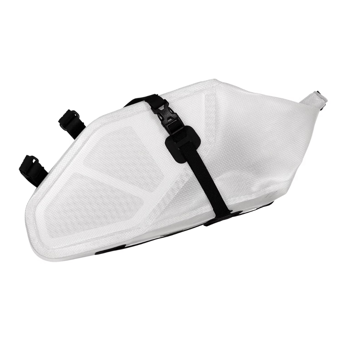Una scelta naturale per i viaggi di più giorni, la capacità di 7 litri della borsa consente di riporre facilmente tutti i tuoi effetti personali in modo sicuro e di proteggerli da acqua e sporco durante la pedalata. Il materiale esterno in TPU altamente resistente, leggero e traslucido è rinforzato con una struttura in Belpolen per mantenere la forma e conferire rigidità, così puoi essere sicuro che la borsa manterrà la sua forma sottile per la migliore efficienza di pedalata. Le cuciture saldate garantiscono la totale impermeabilità della borsa, così puoi pedalare senza il timore che i tuoi effetti personali si bagnino dopo una lunga giornata in sella anche nelle condizioni più umide.