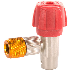 Raccordo per bomboletta CO2. Permette di controllare l'erogazione dell'aria della bomboletta.