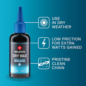 Ottimizzato per le competizioni d'élite per offrire cambi di marcia ultra-efficienti e prestazioni della catena. Rapporto qualità-prezzo imbattibile, Weldtite Dry Wax non ha rivali con guadagni di prestazioni che corrispondono da vicino a lubrificanti ad alte prestazioni che costano oltre 10 volte tanto.